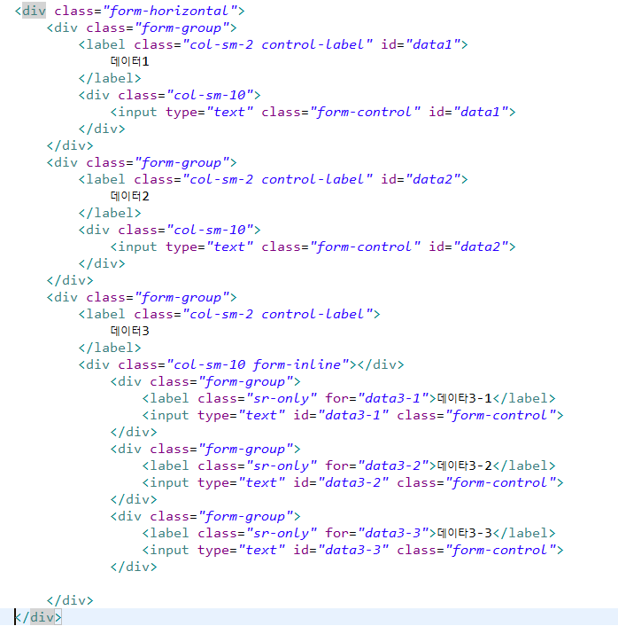 인라인요소인 form-gorup 데이터3-1, 3-2, 3-3 을 넣어준 형태의 코드이다.