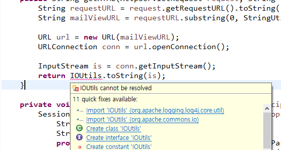 메일 보내는 기능 구현중 IOUtils 메서드를 사용하기위해 commons-io라이브러리를 import하려고하는데 없다... commons 라이브러리를 추가했기떄문에 commons.io 에 있어야 정상인데?,,,, 없었다. 있긴 있는데 commons가 아닌 logging? 하위에 있었다 이건 내가 필요한게 아니었다.